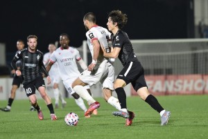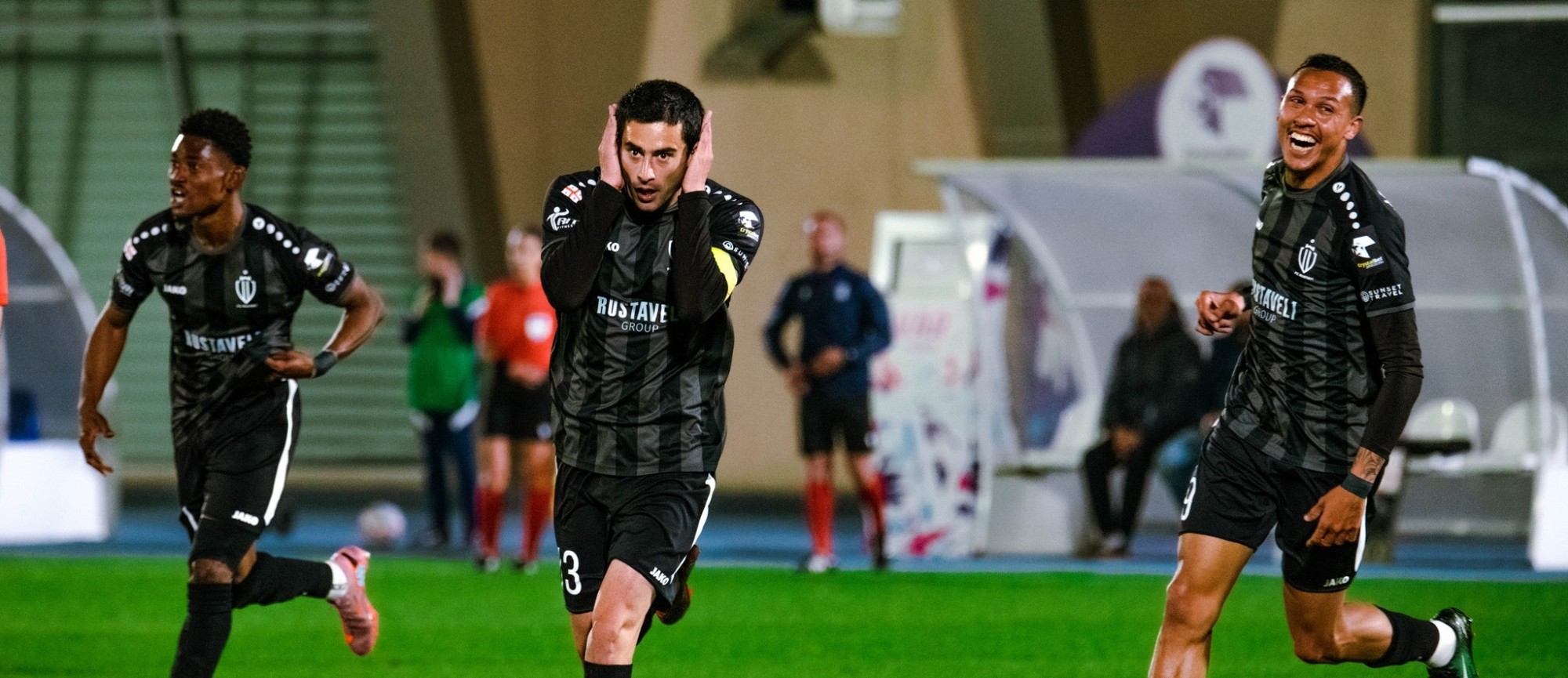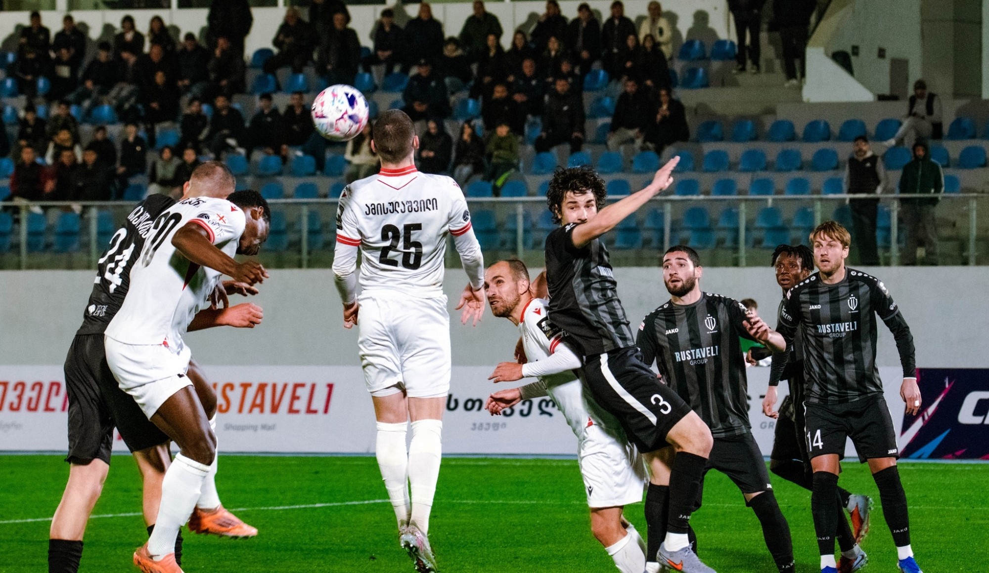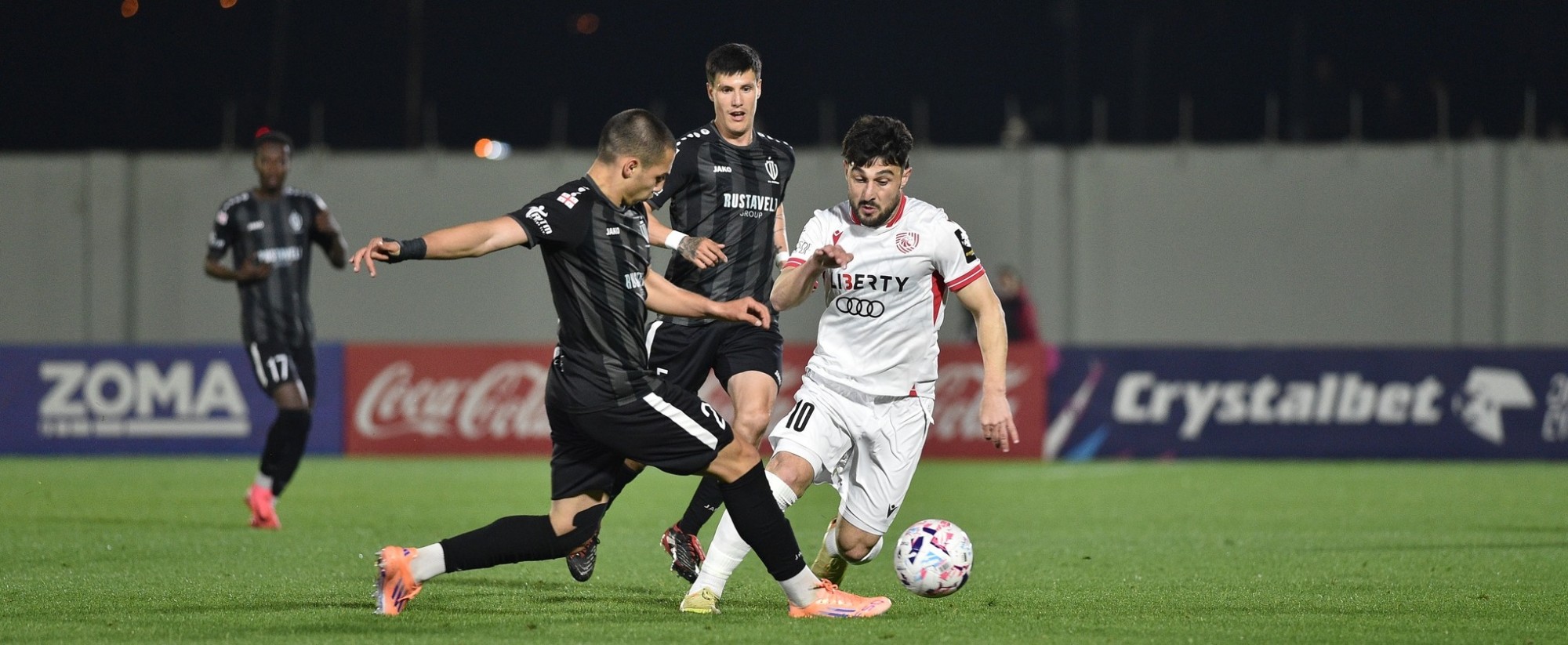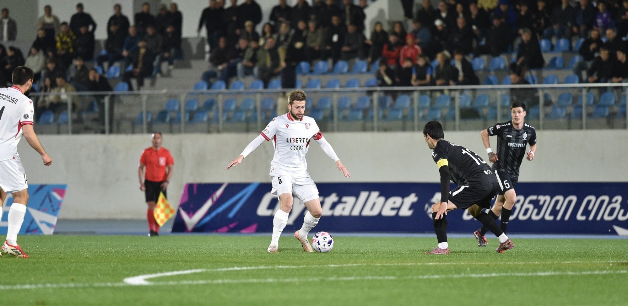 რუსთაველებმა რიცხობრივი უპირატესობა გამოიყენეს. მსაჯის მიერ დამატებული პირველი წუთი, ჯექსონ კანიოს ჩაწოდებული კუთხური და მცველ ირაკლი იაკობიძის თავური - 2:1.